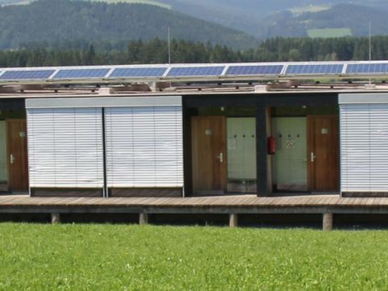Sonnenstromanlage auf dem Dach des Freizeitcamps in Passail