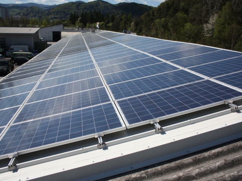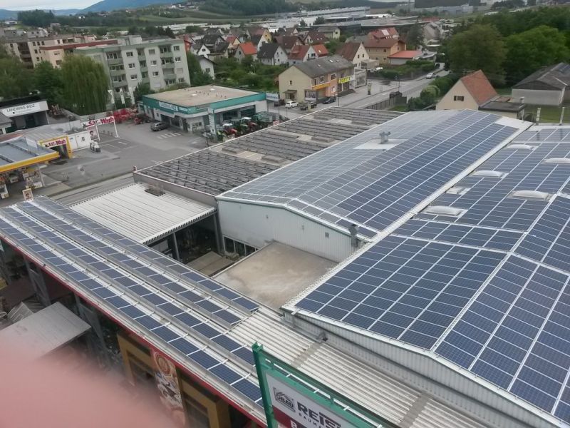 Sonnenstromanlage auf dem Dach des ÖBAU Fachmarkts in Weiz
