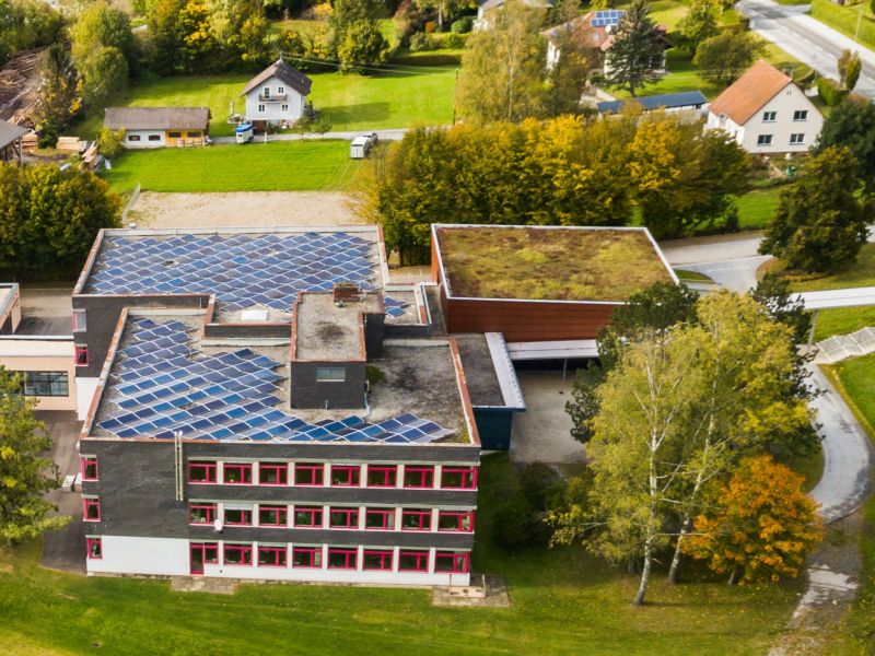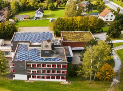 Sonnenstromanlage auf dem Dach der Mittelschule in Passail