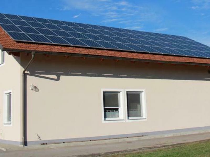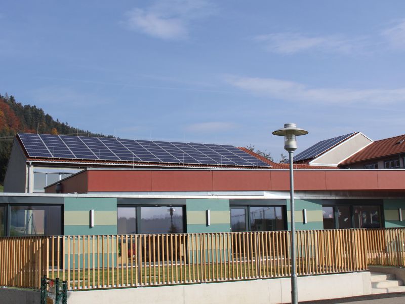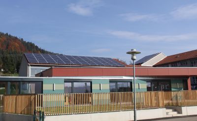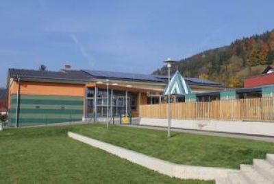 Sonnenstromanlage auf dem Dach des Kindergartens in Passail