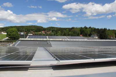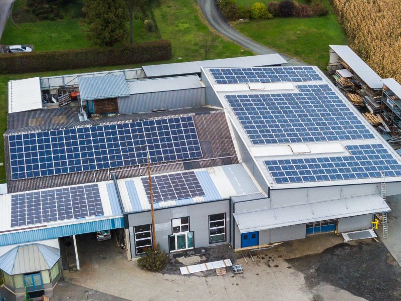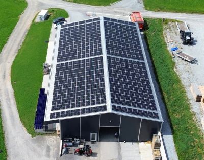 Sonnenstromanlage auf dem Dach und der Fassade der Firma Metallbau Krenn