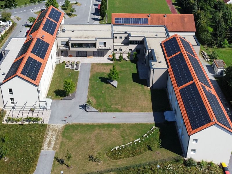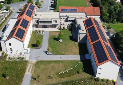 Sonnenstromanlage auf dem Dach der NMS in Pöllau