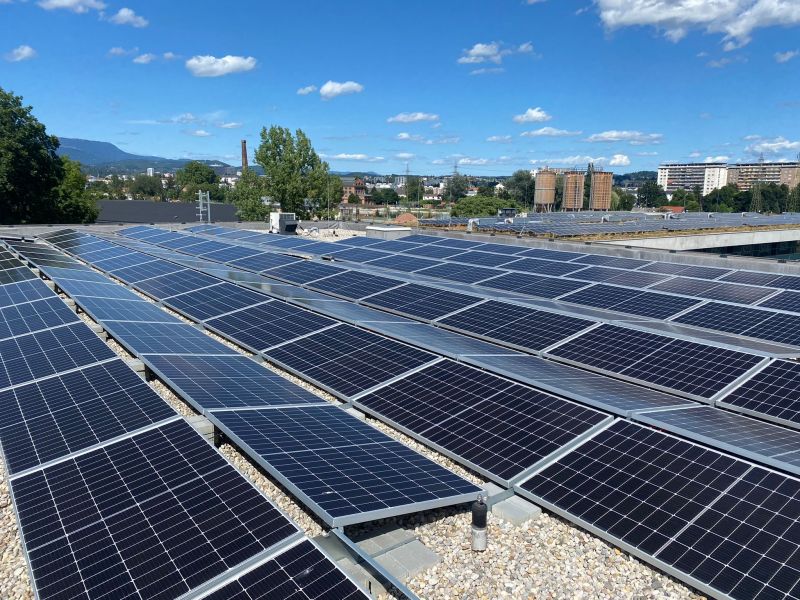 Sonnenstromanlage auf dem Dach des Landring Gleisdorf
