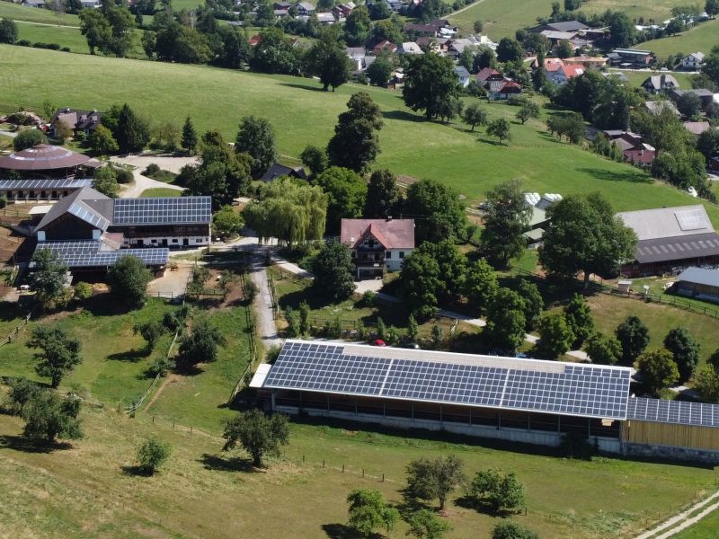 Sonnenstromanlage auf den Gebäuden des Reitstalls Mandl in Tober bei Passail