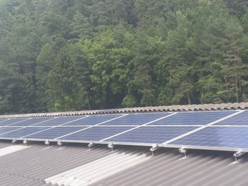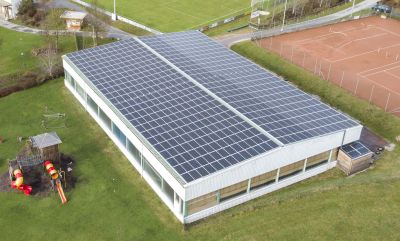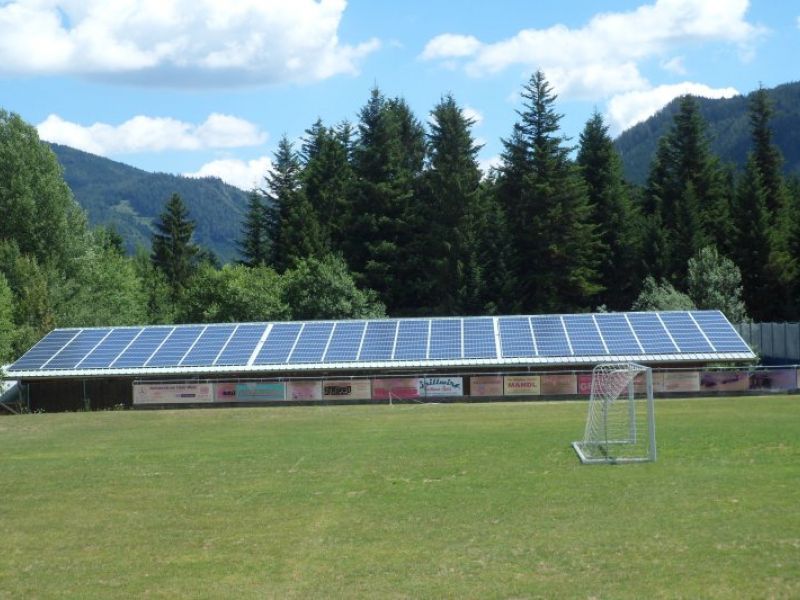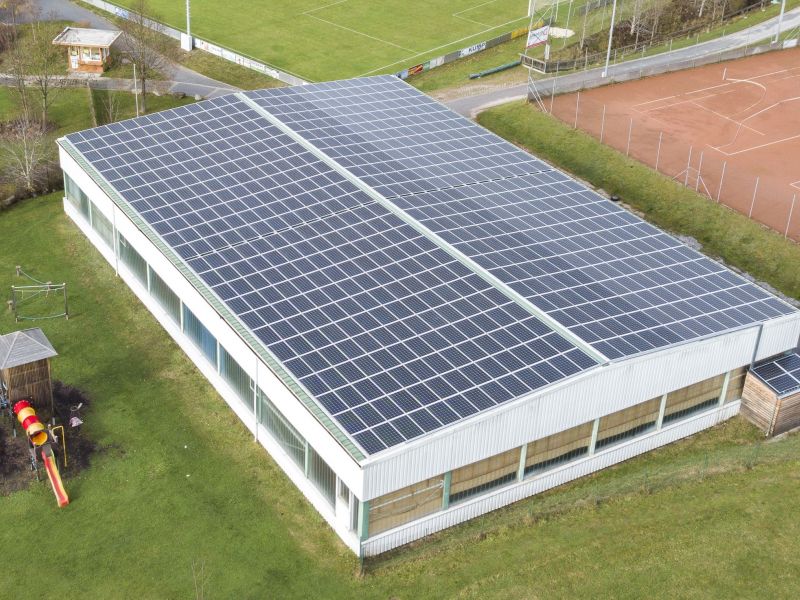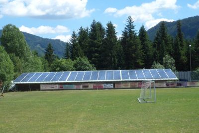 Sonnenstromanlage auf dem Dach der Stocksporthalle in Passail