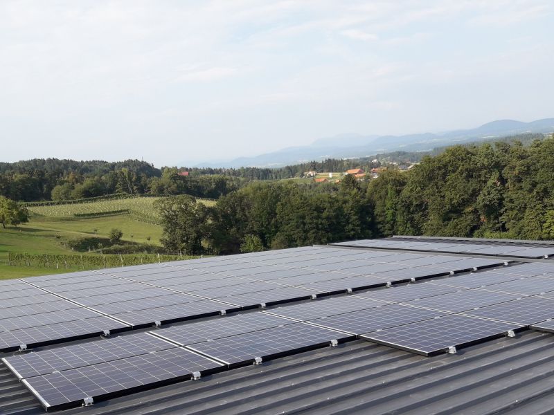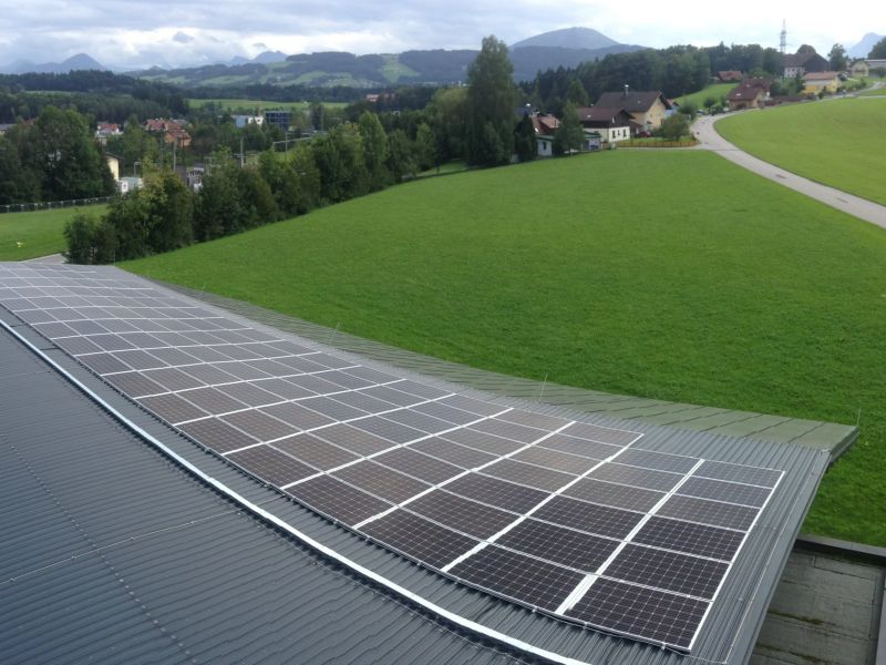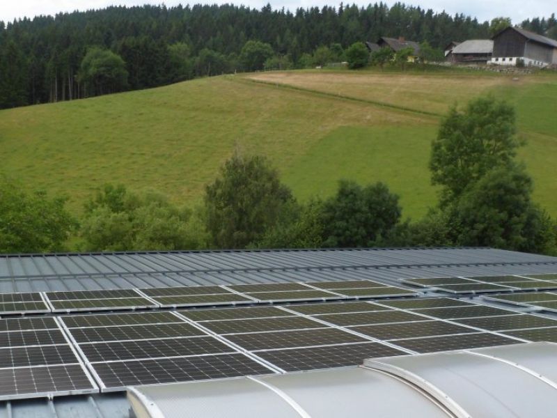 Sonnenstromanlage auf dem Dach der Firma Metalltechnik Hirschbauer am Rechberg.