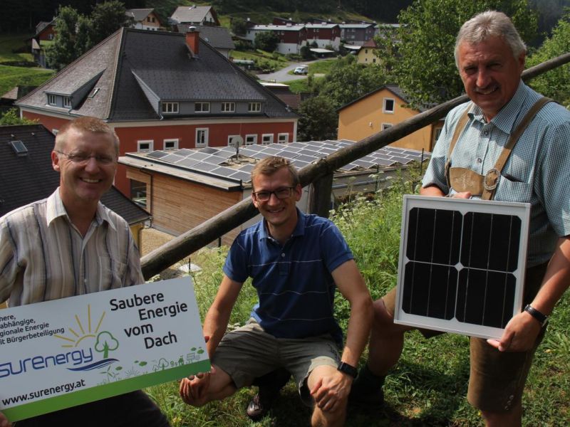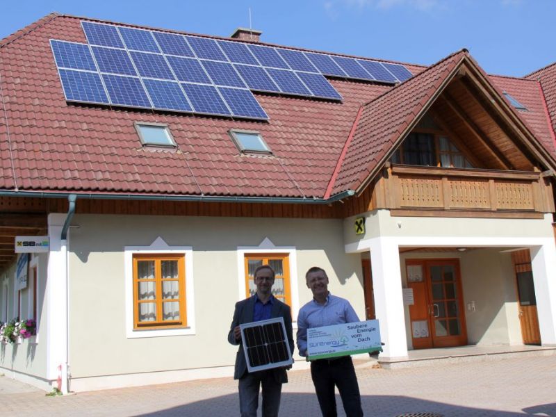 Sonnenstromanlage auf dem Dach des Kultursaals in Gasen