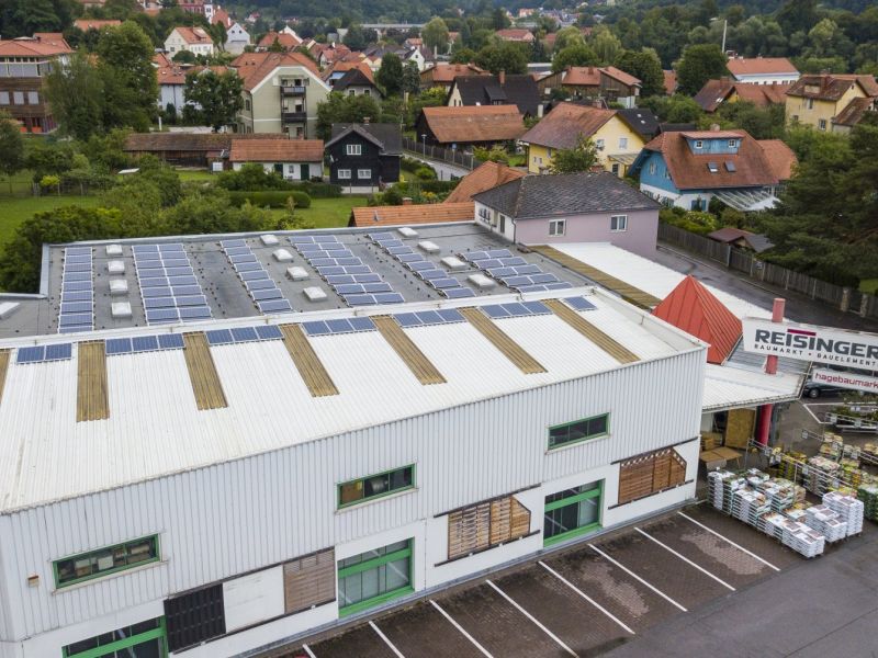 Sonnenstromanlage auf den Dächern des Fachmarktes der Reisinger Unternehmensgruppe