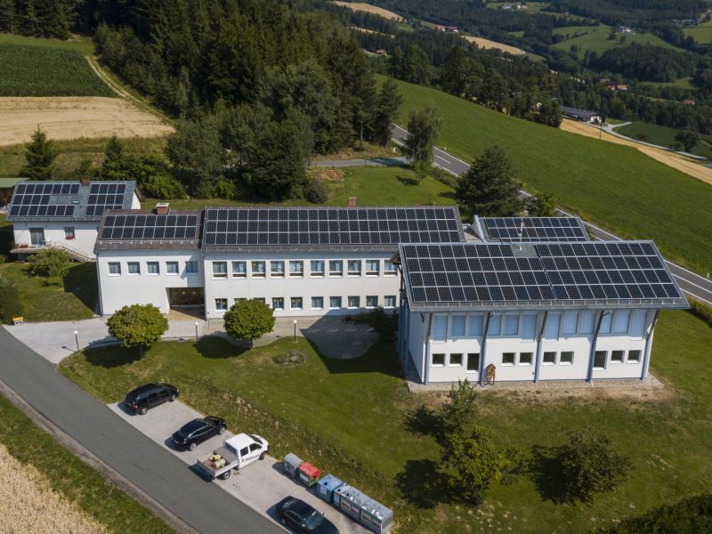 Sonnenstromanlage auf dem Dach der Volksschule in Sonnhofen bei Pöllau