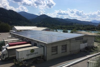 Sonnenstromanlage auf dem Dach des Bauhofs in Hohenau bei Passail