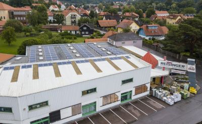 Sonnenstromanlage auf dem Dach des Baustoffzentrums der Reisinger Unternehmensgruppe