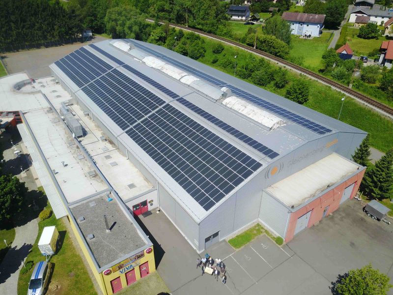 Sonnenstromanlage auf den Dächern der Nordfels GmbH in Bad Leonfelden