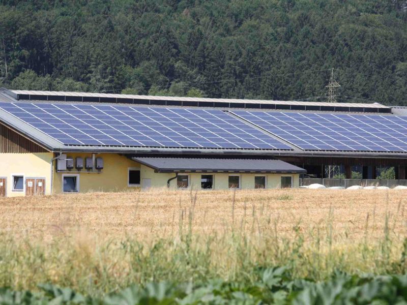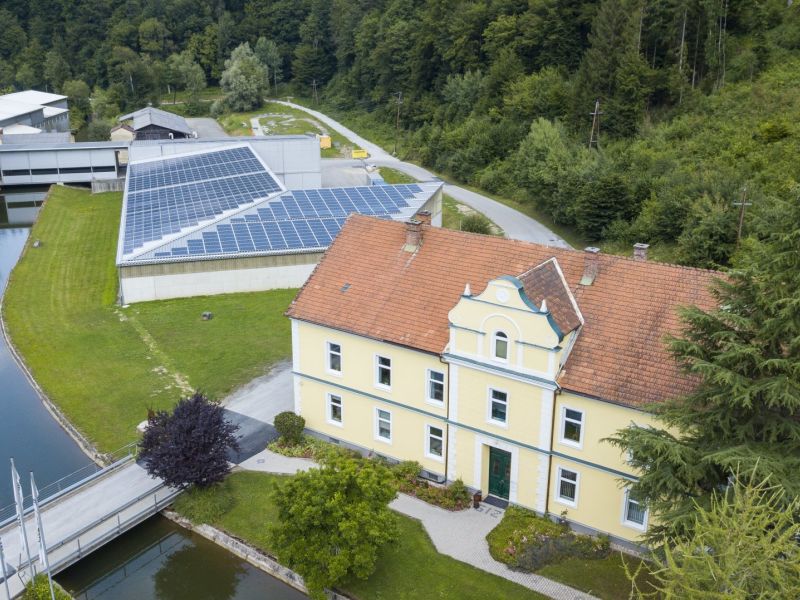 Sonnenstromanlage auf den Dächern der Ölmühle Fandler in Pöllau