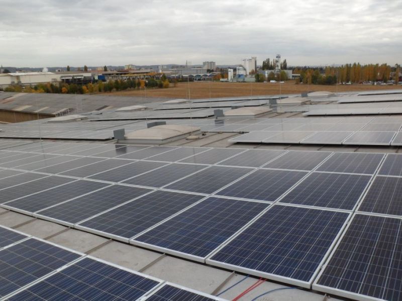 Sonnenstromanlage auf den Dächern der Firma Sommer Transporte in Stainz