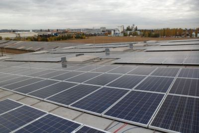 Sonnenstromanlage auf den Dächern der Firma Minka in St. Lorenzen/Mürztal