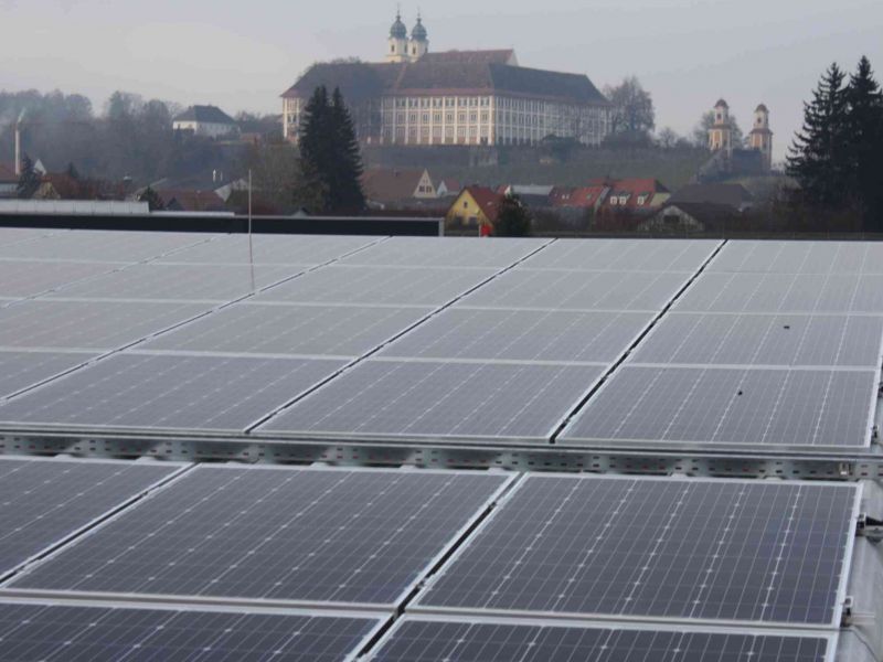 Sonnenstromanlage auf den Dächern der Bad Gleichenberger Halle